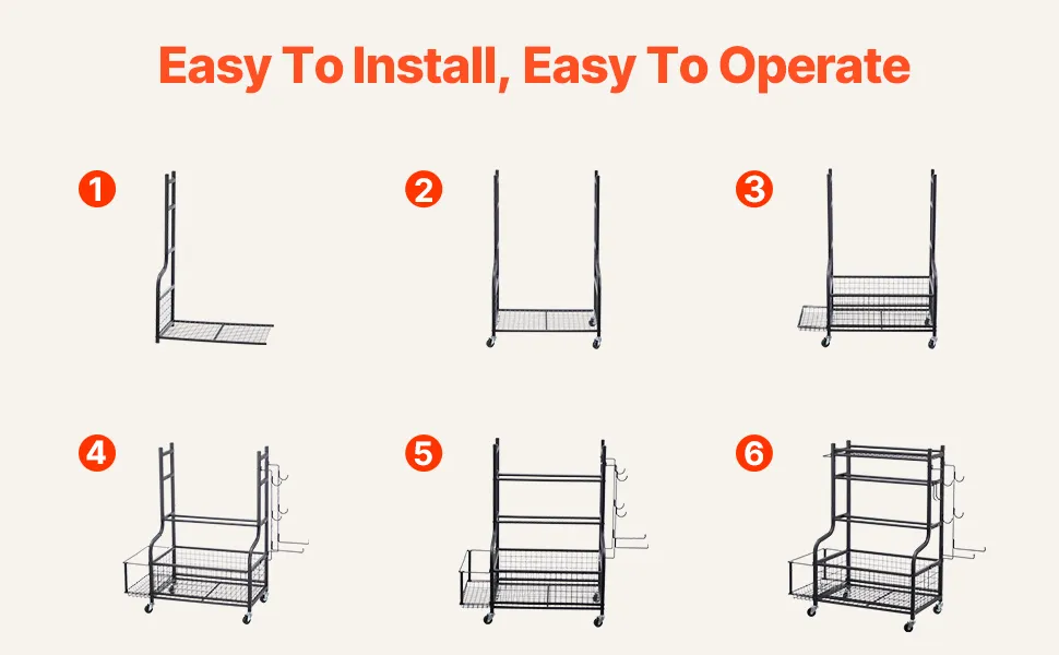 Eine ausführliche Montageanleitung ist im Lieferumfang enthalten und ermöglicht eine einfache Montage. Dank des einfachen Aufbaus und der Montageanleitung ist dieses Aufbewahrungsregal für das Heimfitnessstudio leicht zu installieren. Das Regal wird mit allem notwendigen Zubehör geliefert.