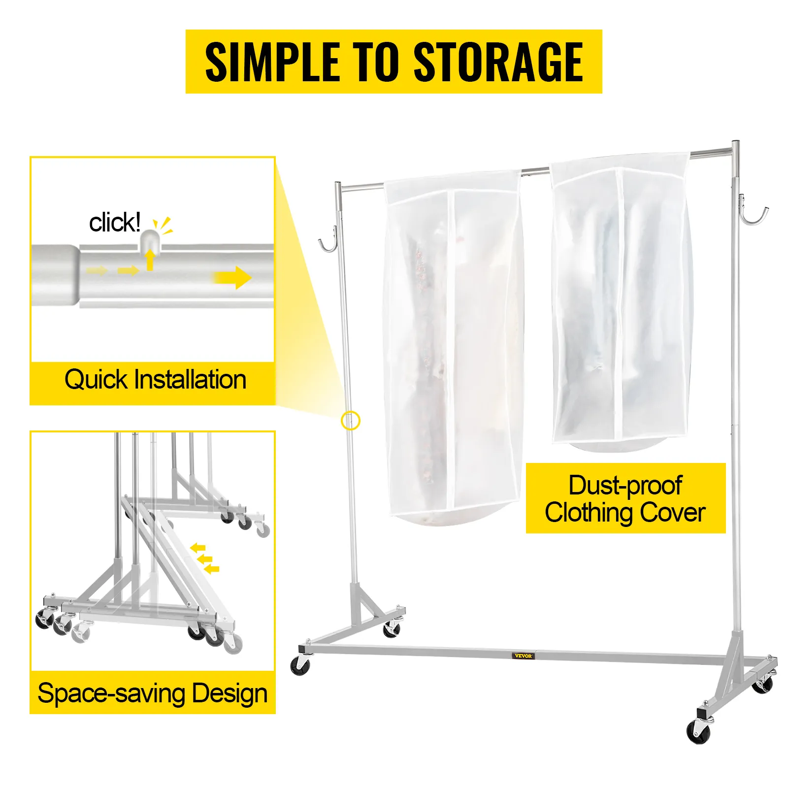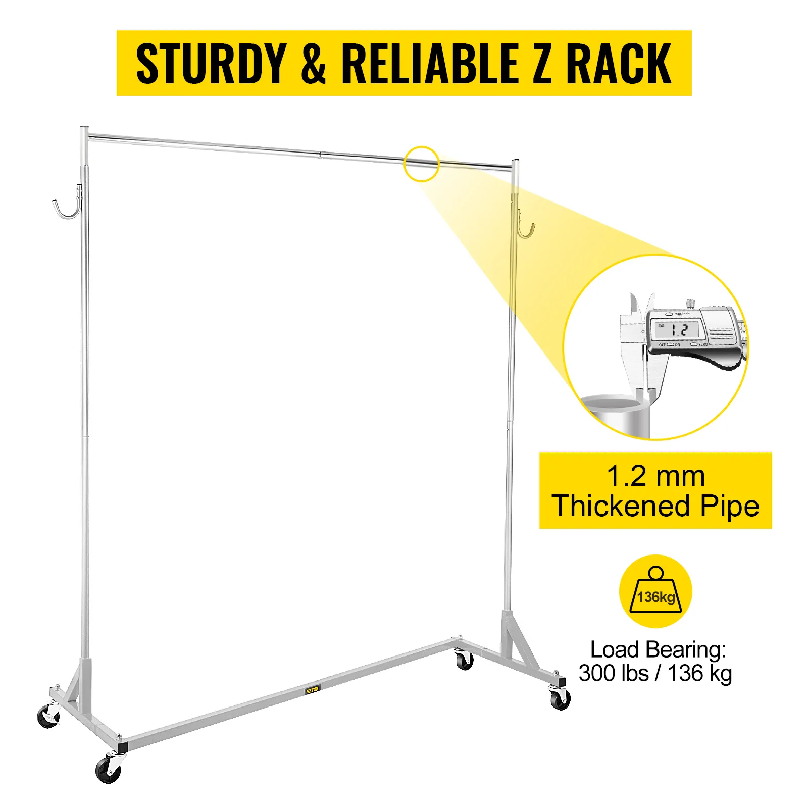 Mit einer Höhe von 66,9 Zoll / 170 cm kann unser rollender Z-Kleiderständer Ihren unterschiedlichen Längenanforderungen für Mäntel oder Kleider gerecht werden.