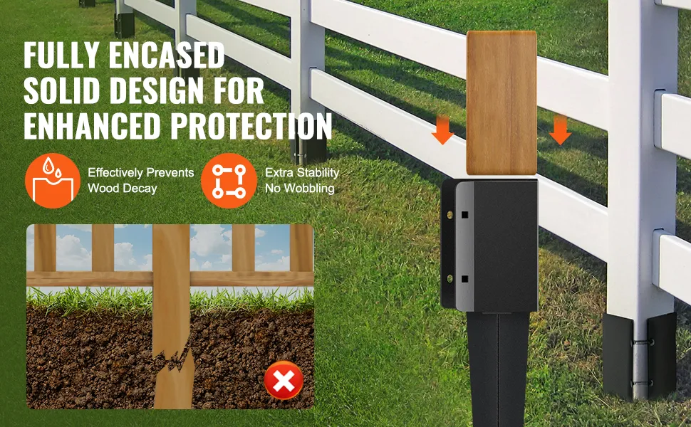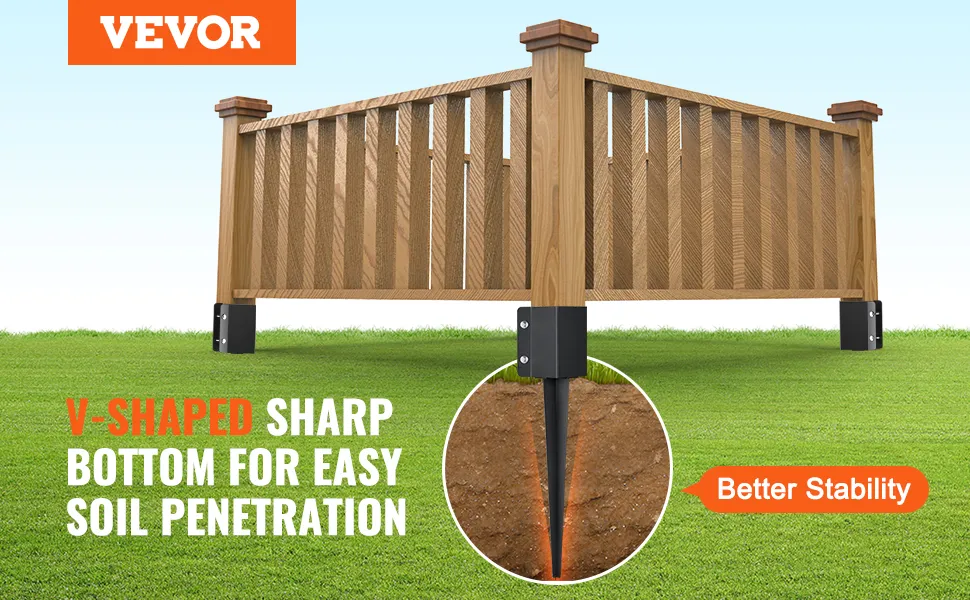Der VEVOR-Zaunpfostenanker besteht aus verdicktem, massivem Hartstahl. Dieses Material sorgt für zusätzliche Festigkeit und Haltbarkeit. Die erhöhte Dicke erhöht seine Härte. Der schwarz pulverbeschichtete Pfosten ist verformungsbeständig. Daher ist er so konzipiert, dass er rauen Wetterbedingungen standhält. Die robuste Konstruktion sorgt für lang anhaltende Leistung. Sie können Ihre Zäune und Geländer sicher befestigen. Das Stahlmaterial bietet eine zusätzliche Schutzschicht, sodass der Pfostenanker im Laufe der Zeit zuverlässig bleibt. Er ist die erste Wahl für alle, die wie Sie Haltbarkeit und Festigkeit suchen!