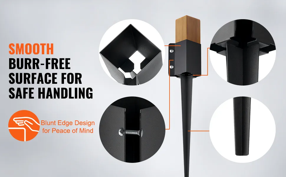 Die Pulverschicht wird zum Beschichten des VEVOR-Zaunpfostenankers verwendet. Diese Schicht bietet starken Schutz gegen Korrosion und Rost. Sie widersteht Boden- und Regenerosion. Außerdem schützt diese Beschichtung das Holz vor Fäulnis. So verlängert sie seine Lebensdauer um Jahre. Die schwarze Pulverbeschichtung verleiht dem Anker ästhetischen Reiz. Sie sorgt dafür, dass er neu und frisch aussieht. Deshalb ist dieser Schutz für Außenanwendungen wichtig. Eines unserer Hauptmerkmale hier ist, wie gut der Schutz den Anker unter allen Bedingungen zuverlässig hält.