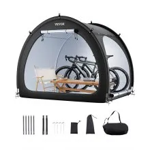 VEVOR Fahrradzelt, 4 bis 5 Fahrräder, geräumige Fahhrradgarage mit belüftetem Fenster, einfach zu installierende Fahrradschuppe mit hochfestem Fiberglas & Doppelreißverschlüssen, 226x151x197 cm