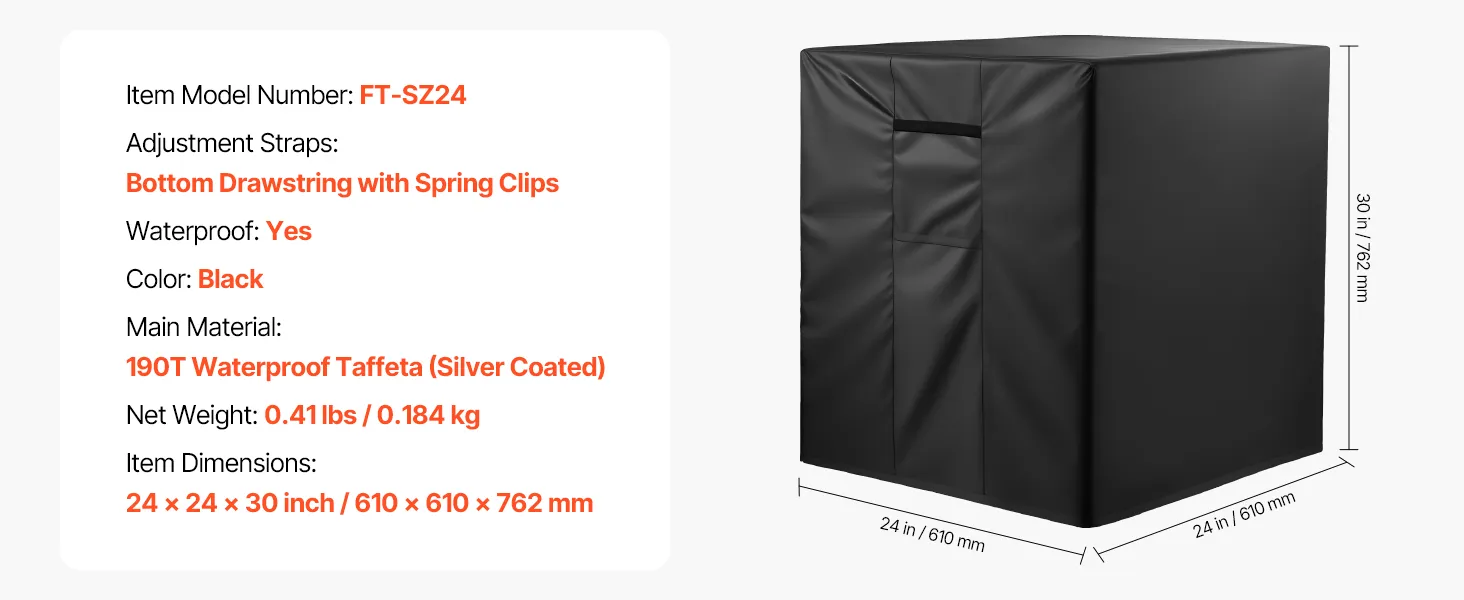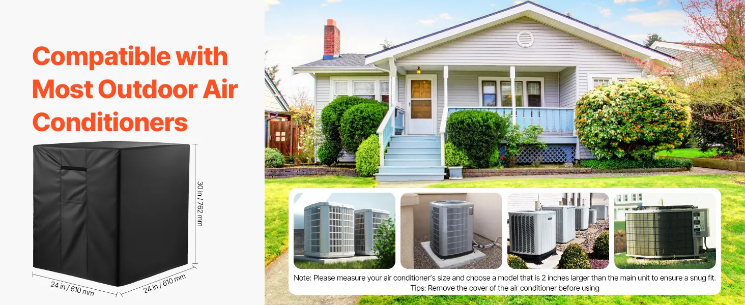 VEVOR Klimaanlagenabdeckung, 610 x 610 x 762 mm, Schutzhülle, dreischichtig, wasserdichtes Polyestergewebe, universelle Passform, Schutzabdeckung für Außen-Klimaanlagen, Schwarz