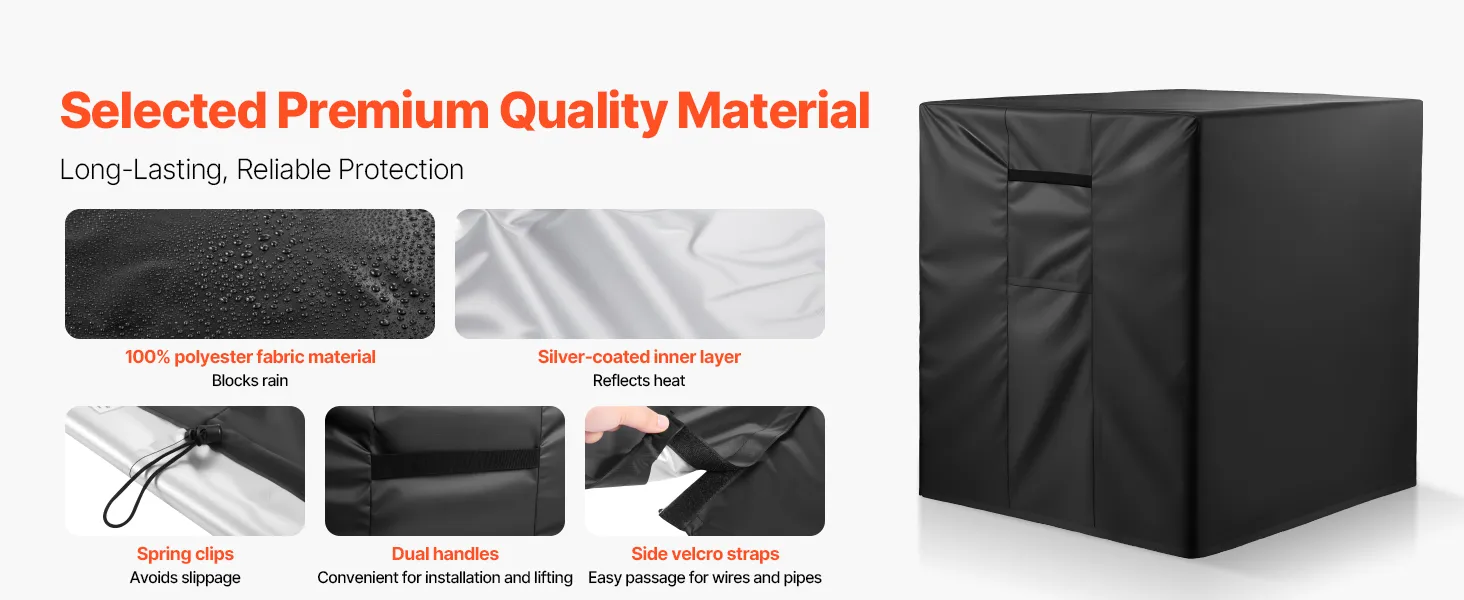 Hochwertiges Material: Diese Klimaanlagenabdeckung verfügt über ein dreilagiges Design mit einer wasserdichten Polyester-Außenschicht, einer silberbeschichteten Innenschicht zur Wärmereduzierung und atmungsaktiven Belüftungsöffnungen zur Vermeidung von Feuchtigkeitsansammlungen und bietet Rundumschutz