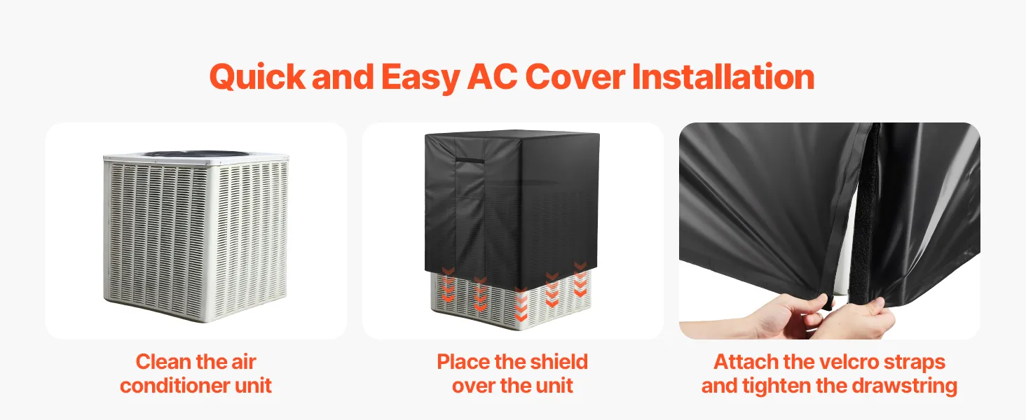 Universelle Passform: Diese Klimaanlagenabdeckung ist für Standard-Klimaanlagen konzipiert. Wählen Sie ein 5 cm größeres Modell als die Größe Ihrer Klimaanlagenabdeckung, um die Passform zu gewährleisten. Bietet effektiven Schutz und verlängert die Lebensdauer Ihrer Klimaanlage durch Schutz vor rauem Wetter.