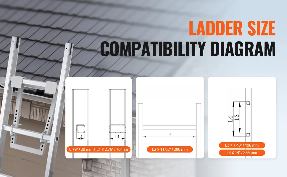 Umfassende Kompatibilität: Passt genau auf Leitern mit einer Stufenbreite von ≥ 11,02 Zoll (ca. 28 cm). Kompatibel mit allen Leitertypen – Holz, Fiberglas oder Aluminium – und bietet eine perfekte Übereinstimmung. Hergestellt aus hochwertigem Stahl für Langlebigkeit und stabilen Halt.