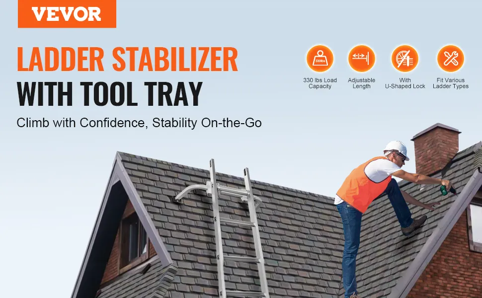 Unser vielseitig einsetzbarer Leiterstabilisator erleichtert und sichert Arbeiten in großen Höhen. Ideal für Dachreinigung, Außenarbeiten, Innenrenovierungen und Außendekorationen. Hinweis: Nicht empfohlen für Dächer mit belüftetem First.