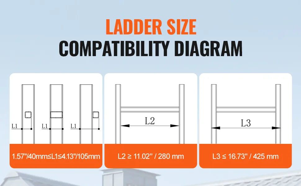 Breite Kompatibilität: Passend für Leitern mit einer Breite von ≤ 42 cm und einer Stufenlänge von ≥ 28 cm. Kompatibel mit verschiedenen Leitertypen – aus Holz, Fiberglas oder Aluminium. Hergestellt aus hochwertigem Stahl für Langlebigkeit und stabilen Halt.