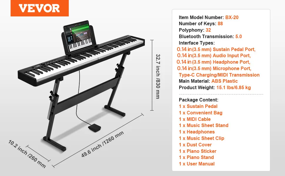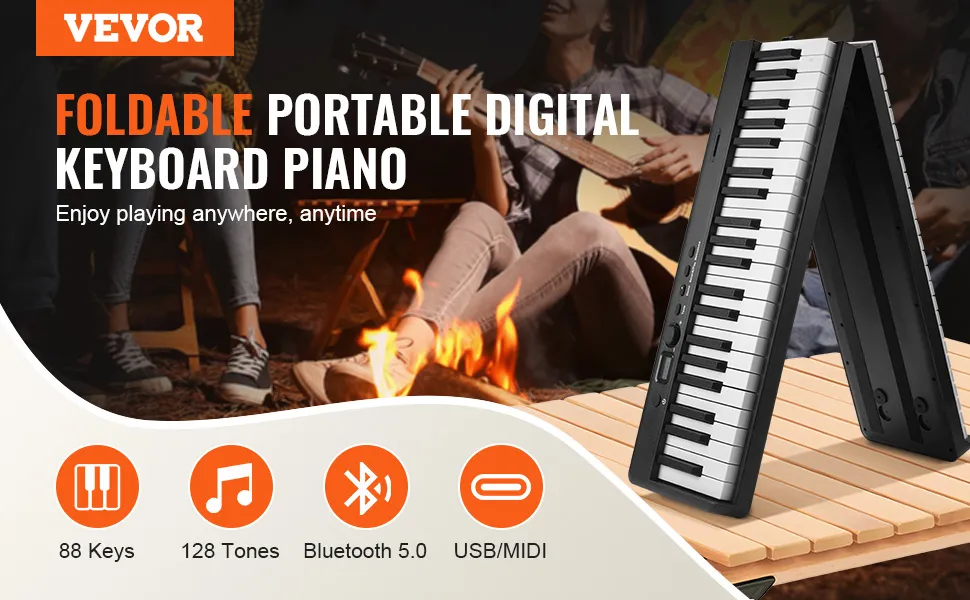 Unser tragbares Klavier verfügt über ein um 180° faltbares Design. Verbinden Sie es über Bluetooth, MIDI oder USB.Tauchen Sie ein in eine Welt der Musik mit einem verstellbaren Ständer, 128 Tönen und internationalen Standardrhythmen, Stereolautsprecher und LED-Digitalanzeige.