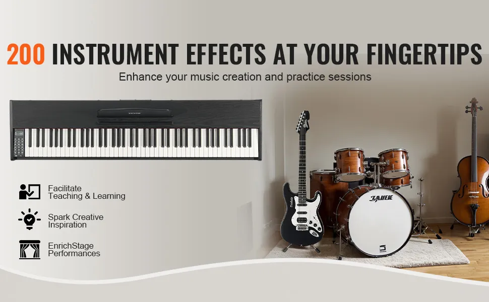 Das Digitalpiano kann die Effekte von 200 Instrumenten spielen. Anfänger können damit leicht die verschiedenen Instrumente und Beats verstehen und sich mit ihnen identifizieren.