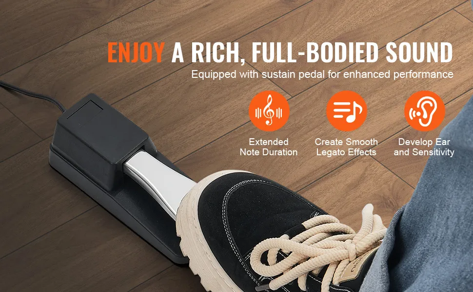 Das Haltepedal, das mit diesem gewichteten Keyboardpiano geliefert wird, hilft dabei, die Dauer der Noten zu verlängern, Legato-Effekte zu erzeugen und den Gesamtklang voller und dreidimensionaler zu machen. Dies hilft den Übenden, ihr Gehör und ihre Sensibilität für Musik zu entwickeln.