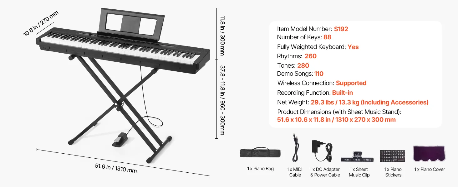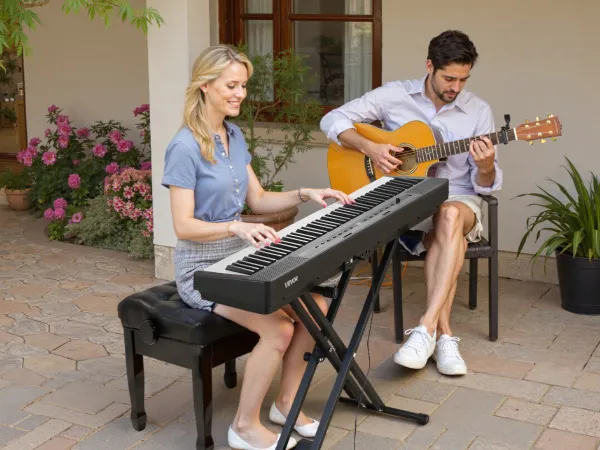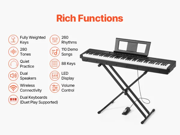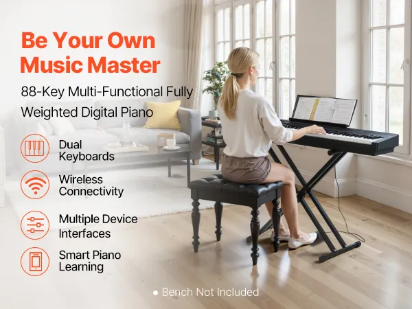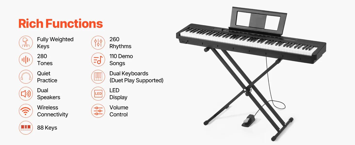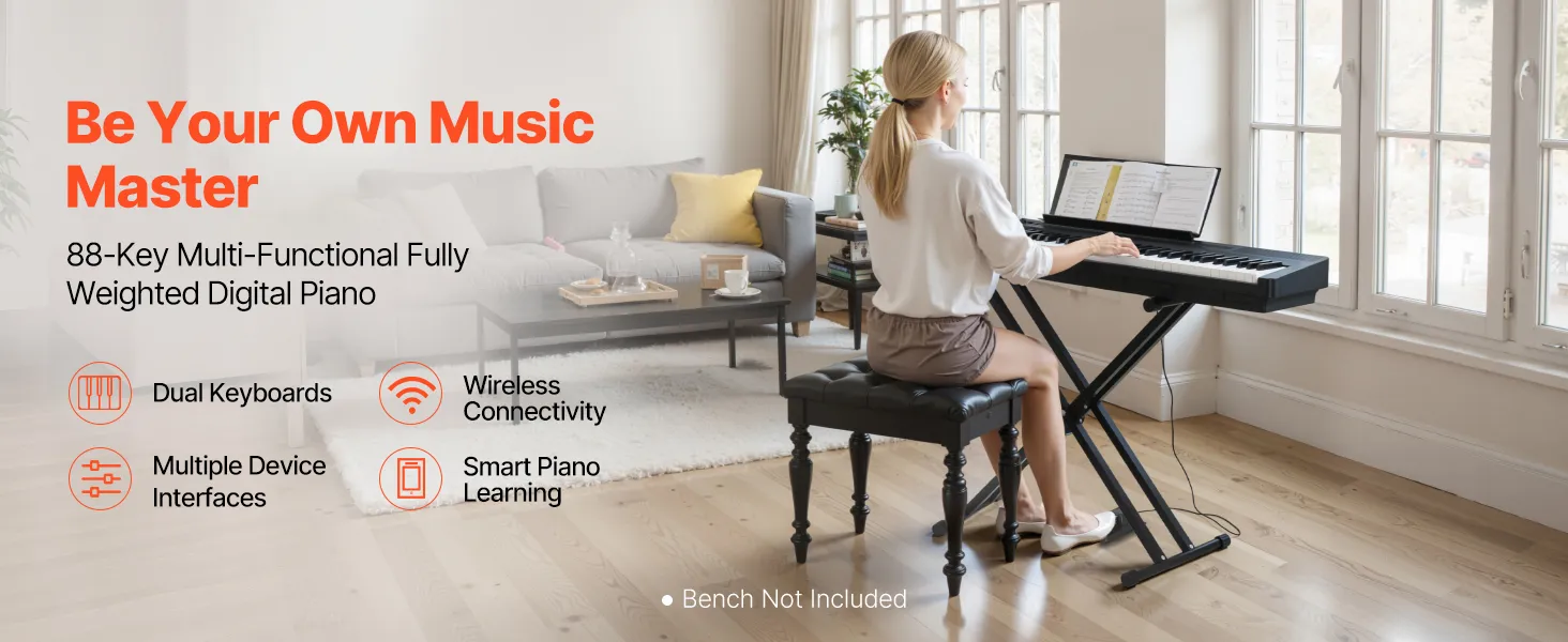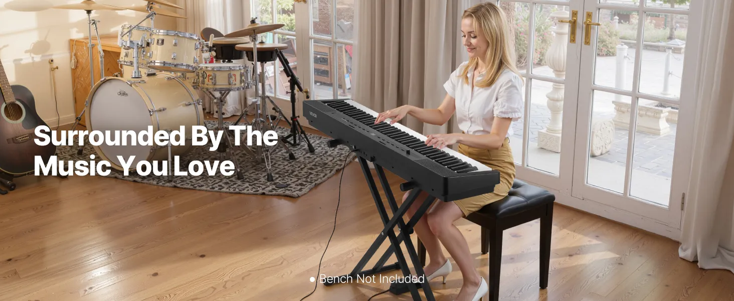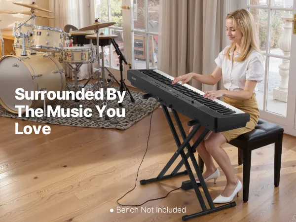 Im Vergleich zu einem akustischen Klavier ist unsere gewichtete Tastatur mit 88 Tasten leichter und einfacher zu transportieren, sodass Sie sie überall aufstellen können. Sie können auch gemeinsam mit Freunden oder Ihrer Familie spielen und die Musik genießen.