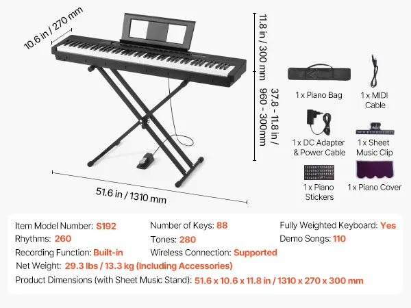 Dieses gewichtete Keyboard-Piano mit 88 Tasten ist ideal für den Übergang vom Üben zum echten Klavier. Es bietet einen Dual-Keyboard-Modus und 280 satte Töne, integrierte Lautsprecher, MIDI- und Bluetooth-Unterstützung sowie Audio-, Mikrofon- und Kopfhöreranschlüsse. Tauchen Sie selbstbewusst in die Welt der Musik ein!