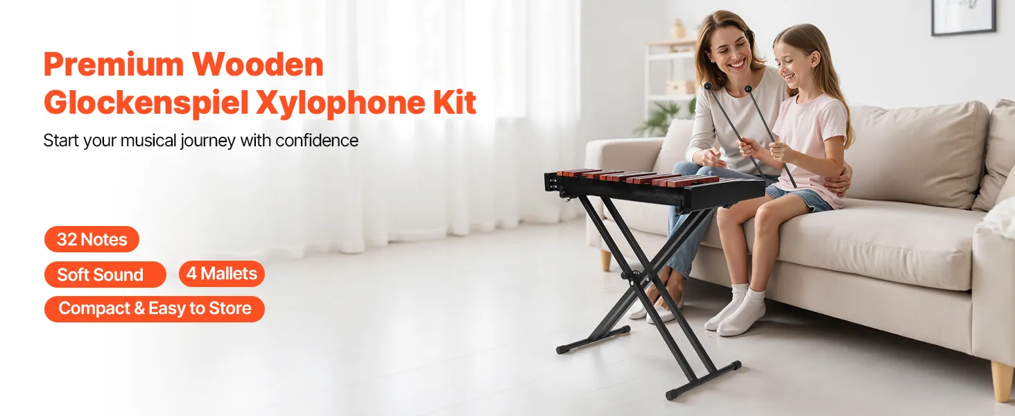 Glockenspiel-Xylophon-Set aus Holz mit 32 Tönen