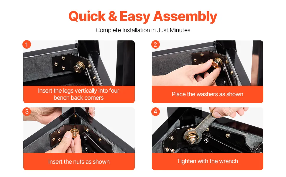 Dank der klaren Anleitung und der minimalen Anzahl an Einzelteilen können Sie sie im Handumdrehen aufbauen. Ob für Ihren Schminktisch oder Ihr Musikzimmer, diese Bank ist in wenigen Minuten einsatzbereit und verleiht Ihrem Raum Stil und Komfort.