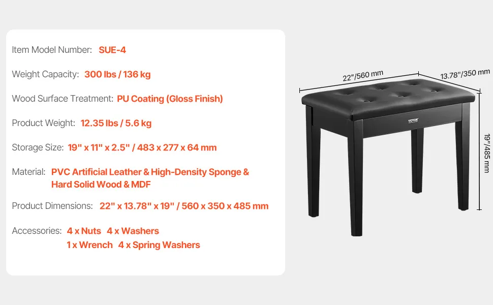 Langlebige und verschleißfeste Beschichtung: Diese Klavierbank ist mit einer hochwertigen PU-Beschichtung versehen und verfügt über eine glatte, gleichmäßige Beschichtung, die die Haltbarkeit erhöht. Sie hält der alltäglichen Abnutzung gut stand und ist daher eine zuverlässige Wahl für den Langzeitgebrauch. Ideal für Musiker, die eine Bank benötigen, die mit ihrem Alltag Schritt halten kann.