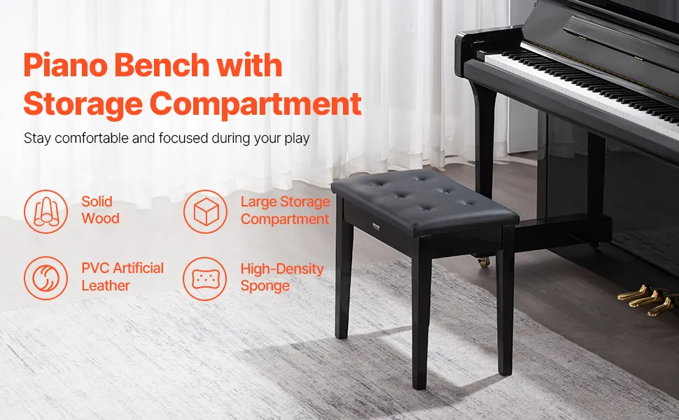 VEVOR Klavierhocker 560 x 350 x 485 mm, Klavierbank, Keyboard-Klavierstuhl mit gepolstertem Kissen, Ablagefach für Notenbücher, Pianobank, Hockersitz, für Schminktisch, Wohnzimmer, Schlafzimmer