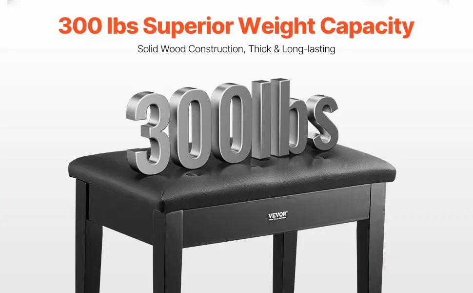 Dieser Klavierstuhl ist aus massivem, hochwertigem Holz gefertigt und kann bis zu 136 kg tragen. Egal, ob Sie Keyboard spielen oder einen zuverlässigen Sitz für andere Aktivitäten benötigen, die Konstruktion gewährleistet einen sicheren und stabilen Sitz bei längeren Sitzungen.