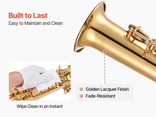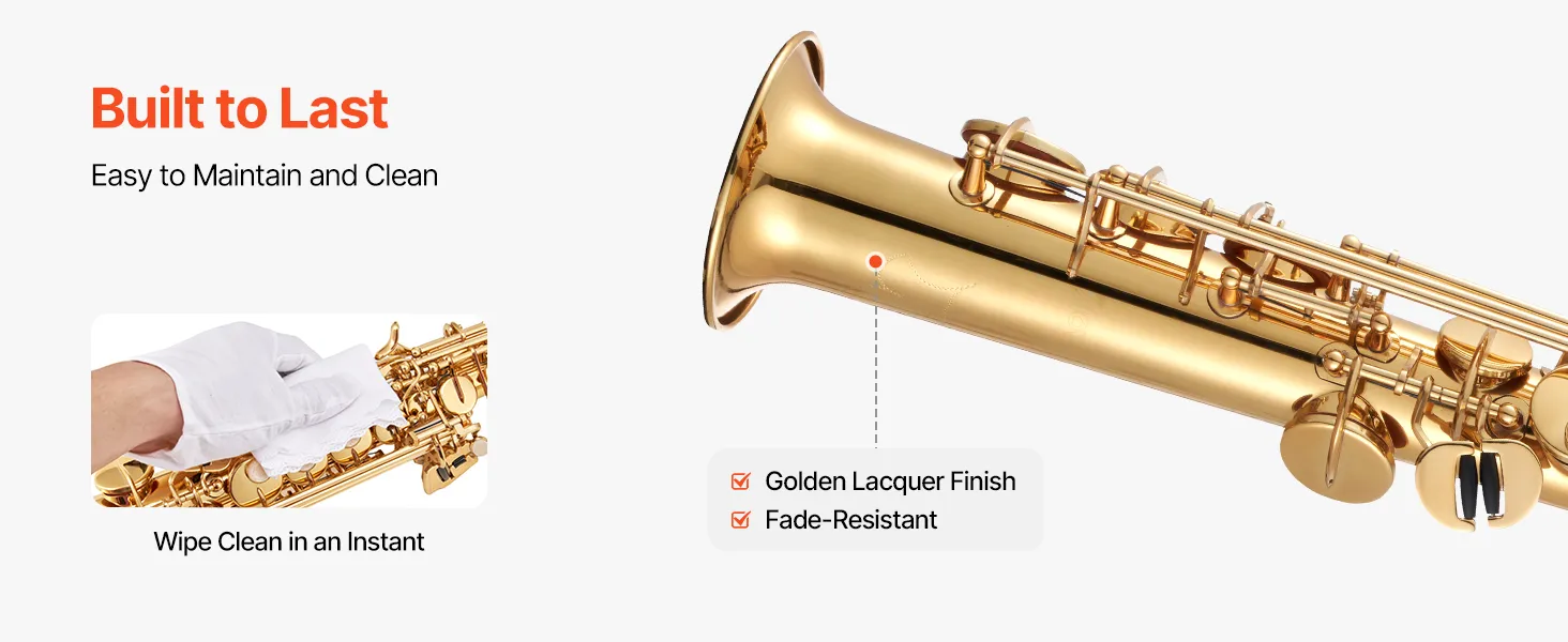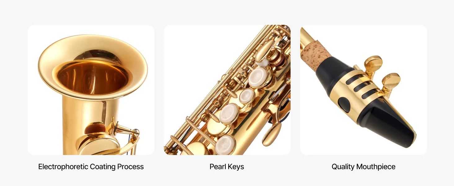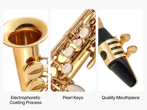 Klare, stabile Klangqualität: Dank der Messingkonstruktion und der elektrophoretischen Beschichtung lässt dieses Sopransaxophon die natürliche Resonanz des Messings durchscheinen und erzeugt einen klaren, hellen Klang. Genießen Sie einen stabilen Ton und eine sanfte Ansprache bei jeder Note.