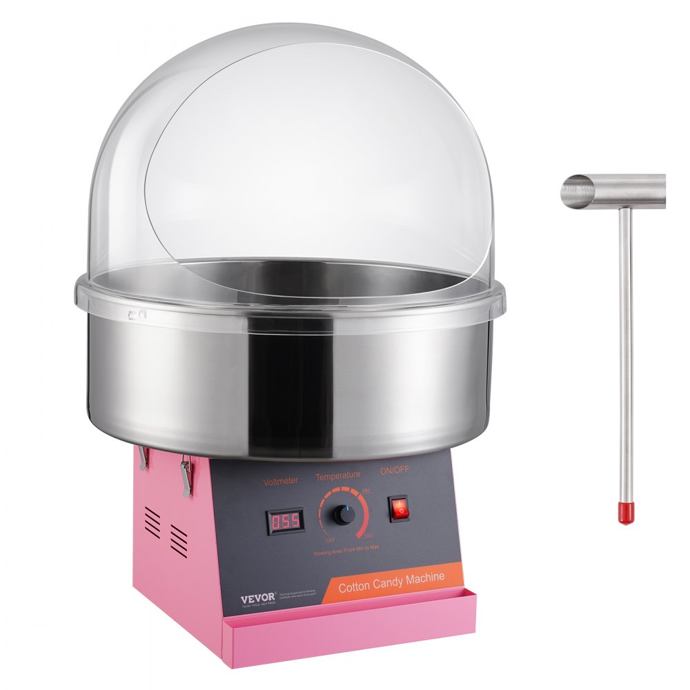 Temperaturregelung: Im Gegensatz zu herkömmlichen Geräten verfügt unsere elektrische Zuckerwattemaschine über ein Spannungsanzeigegerät und einen Temperaturregler. Durch Verändern der Spannung kann die Temperatur einfach von 244,9 °F (118,3 °C) bis 439,2 °F (226,2 °C) eingestellt werden. Wenn man verschiedene Zuckersorten ausprobieren möchte, ist das ein Muss.