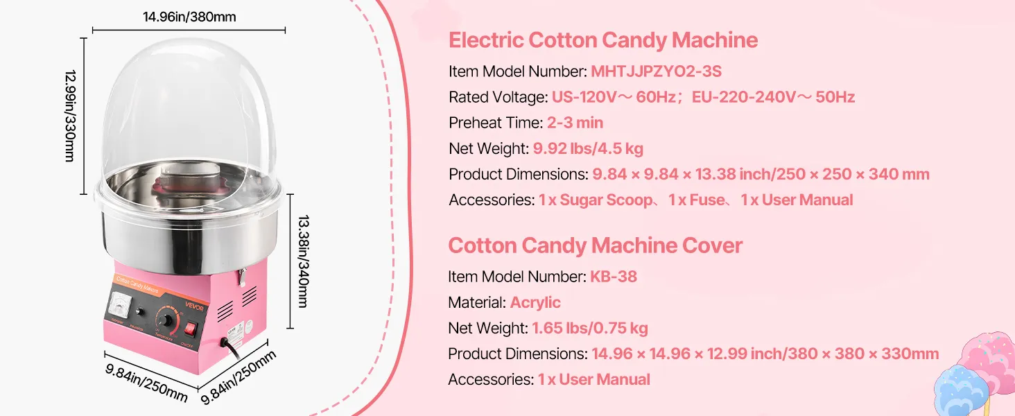 Ausgestattet mit einem intelligenten Thermostat schaltet sich diese elektrische Zuckerwattemaschine mit Deckel bei Überhitzung automatisch ab. Der mitgelieferte Acryldeckel sorgt für einen sauberen Arbeitsbereich, indem er das Herausspritzen von Zucker verhindert und vor Staub und Schmutz schützt.