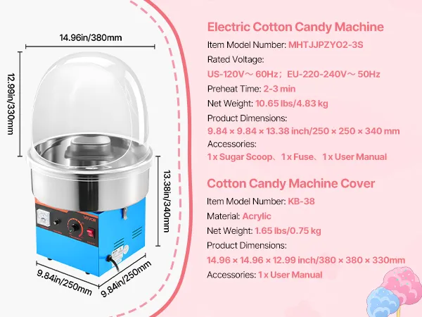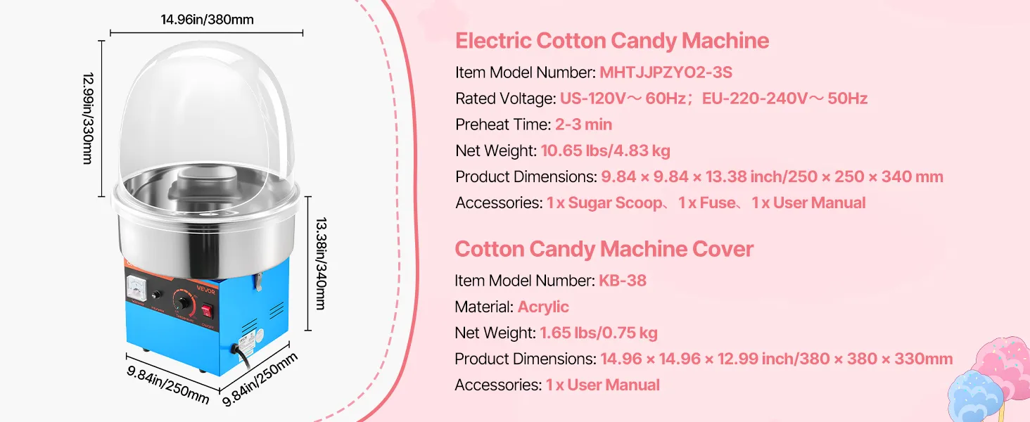 Genießen Sie Zuckerwatte jederzeit mit diesem Zuckerwattenmacher mit Deckel. Ob Geburtstag, Feier, Gartenparty oder Süßwarenladen – mit dieser Maschine wird das Servieren von süßen Leckereien zum Vergnügen und sorgt für unvergessliche Momente für Familie, Freunde und Gäste.