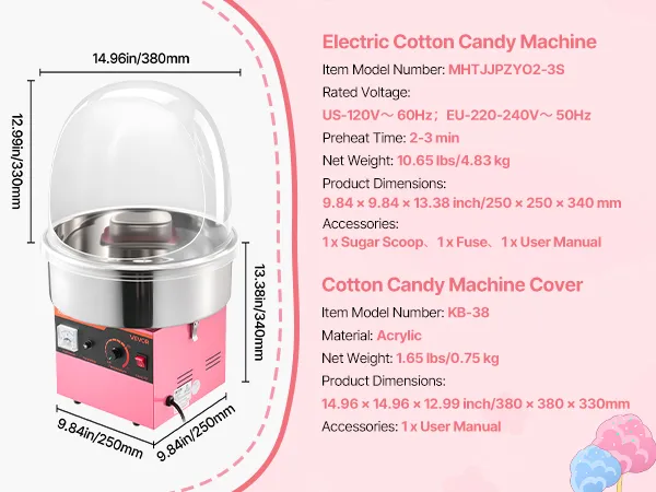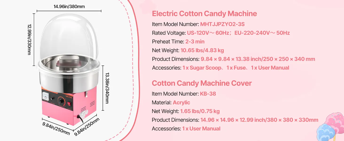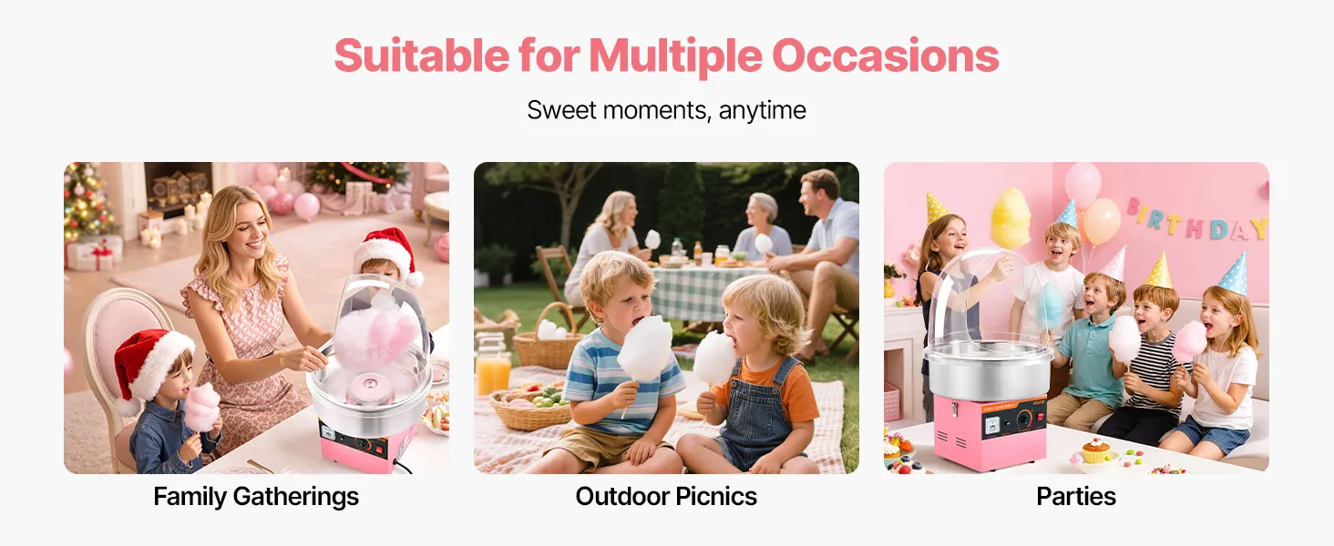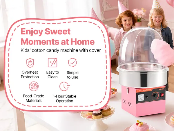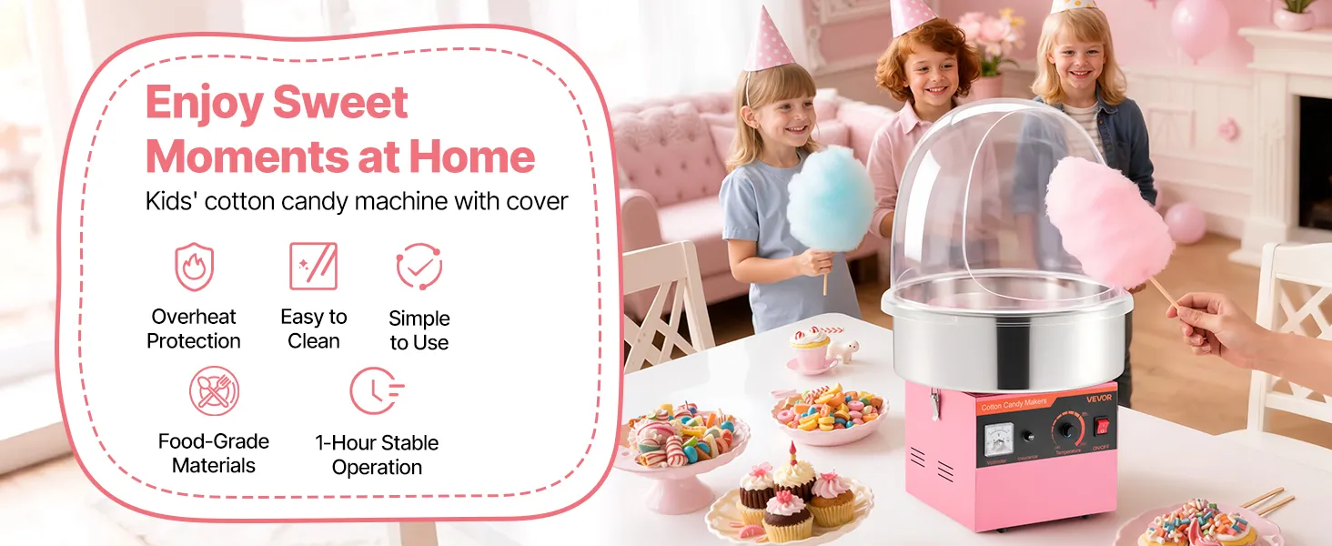 Genießen Sie Zuckerwatte jederzeit mit dieser VEVOR-Zuckerwattemaschine mit Deckel. Ob Geburtstag, Feier, Gartenparty oder Süßwarenladen – mit dieser Maschine wird das Servieren von süßen Leckereien zum Vergnügen und sorgt für unvergessliche Momente für Familie, Freunde und Gäste.