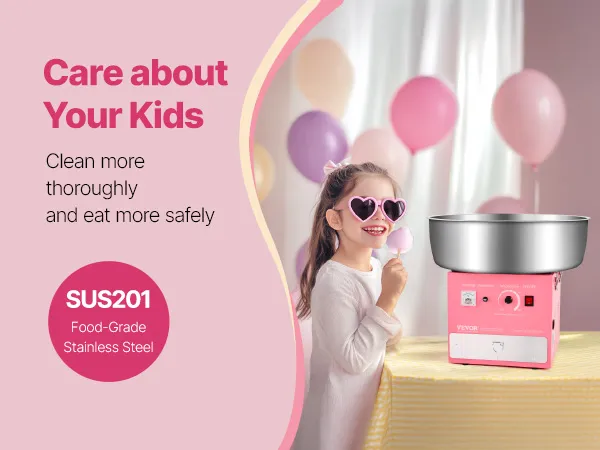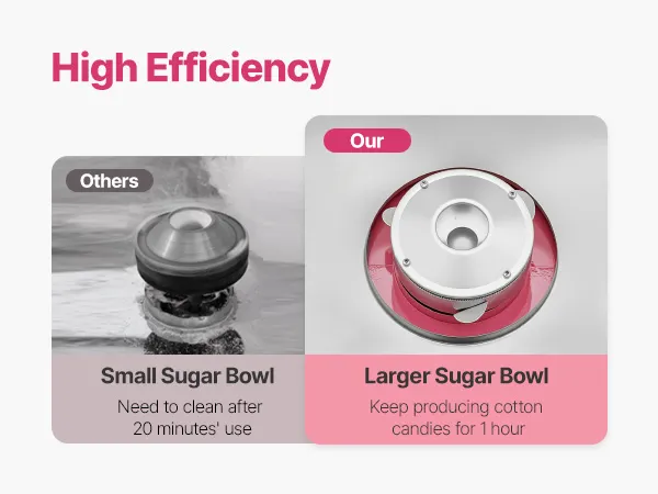 Erfüllen Sie Ihre kommerziellen Anforderungen: Unsere Zuckerwattemaschine verfügt über einen 1000-Watt-Motor. Die größere Zuckerwatteschale sorgt für eine schnelle Produktion von Zuckerwatte-Tüten und produziert 6 Zuckerwatte-Tüten pro Minute, um Ihren hohen Produktionsbedarf zu decken. Sie ist für einen Dauerbetrieb von einer Stunde ohne Verstopfung oder Abschaltung ausgelegt, wodurch häufiges Abschalten und Reinigen vermieden wird