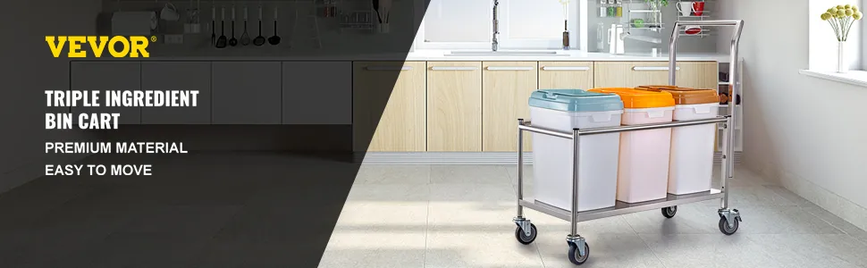 Vevor Zutatenbehälter Mit 3 Behälter Rollwagen Und Deckel Für Mehl Reis Gewürze Vevor Zutatenbehälter Mit 3 Behälter Rollwagen Und Deckel Für Mehl Reis Gewürze