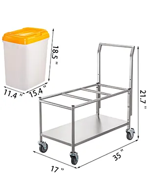 Dieser Lebensmittelbehälter besteht aus sicherem Polypropylen-Kunststoff, ist nicht leicht zu beschädigen und widersteht Verwerfungen und Beulen. Mit dem Edelstahlwagen ist er robust und langlebig.