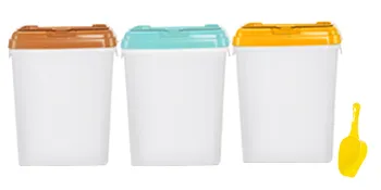 Der mitgelieferte Deckel verhindert, dass Verunreinigungen in den Behälter gelangen. Das Design des Verschlussdeckels erleichtert das Öffnen. Innere weiße Box für bequemen Gebrauch. Eine mitgelieferte Schaufel zur Abgabe Ihrer Produkte.