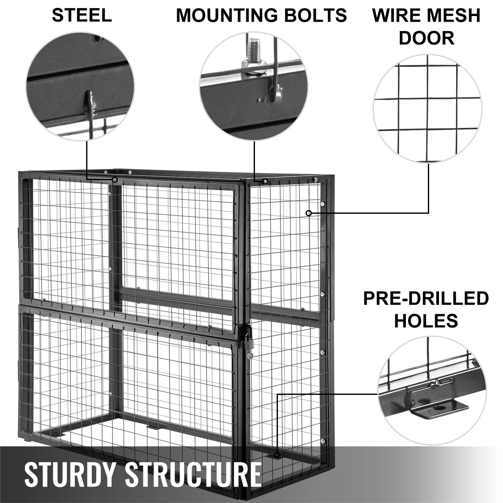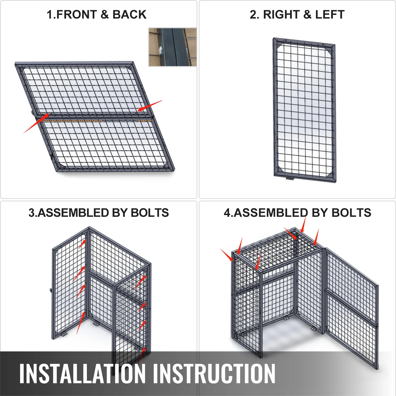 • 【EINFACHE BEDIENUNG】 - Besteht aus vier Drahttüren, die Sie mit mehreren Schrauben zusammenbauen können. Der Käfig dient der richtigen Belüftung und Sichtbarkeit des Inhalts. Um die Stabilität und Sicherheit zu gewährleisten, stellen wir vier Expansionsschrauben zur Verfügung, um die vier vorgestanzten Befestigungslöcher in den Füßen zu befestigen.