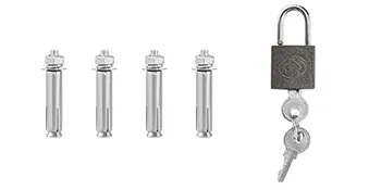 Wir haben vier Expansionsschrauben, einen Schlüssel und ein Schloss bereitgestellt, um den Käfig für Sicherheit und Stabilität zu verbessern.