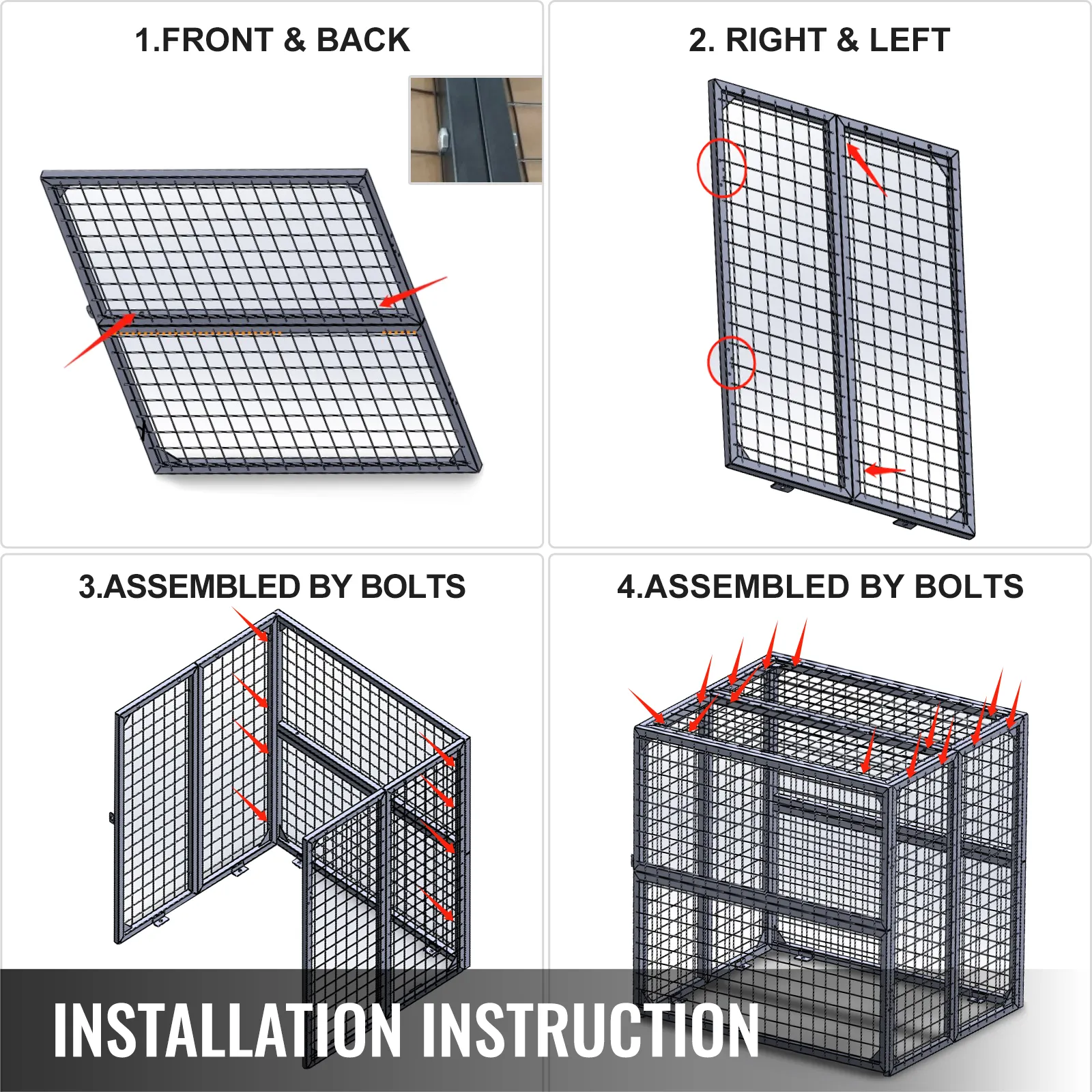 【EINFACHE BEDIENUNG】 - Besteht aus vier Drahttüren, die Sie mit mehreren Schrauben zusammenbauen können. Der Käfig dient der richtigen Belüftung und Sichtbarkeit des Inhalts. Um die Stabilität und Sicherheit zu gewährleisten, stellen wir vier Expansionsschrauben zur Verfügung, um die vier vorgestanzten Befestigungslöcher in den Füßen zu befestigen.